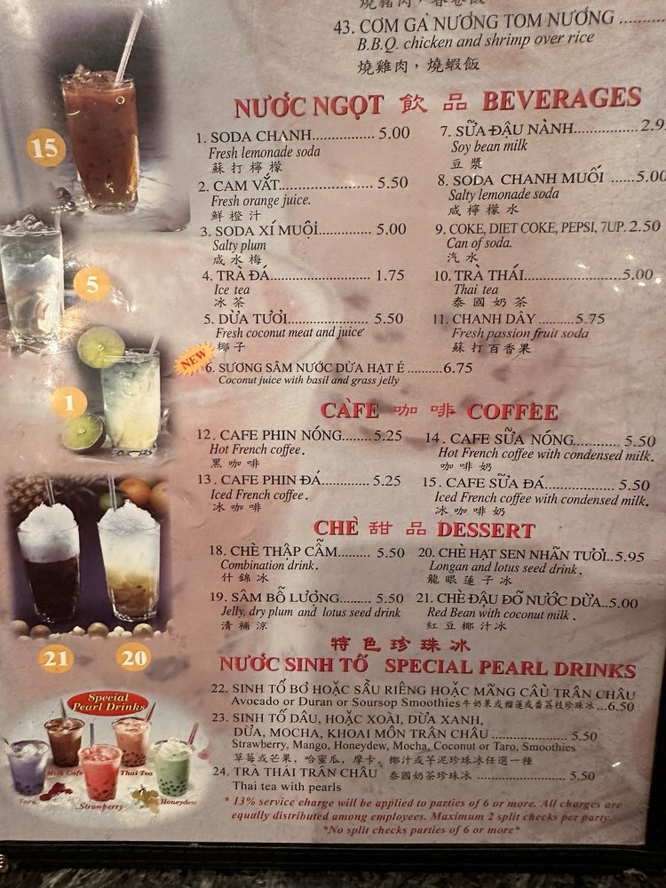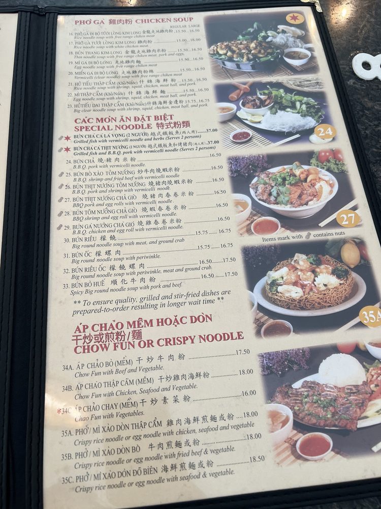 Pho Kim Long in San Jose offers a wide array of Vietnamese and Chinese dishes, with a focus on noodle soups, rice plates, and chow fun. The restaurant provides options for delivery, takeout, and reservations, catering to various dietary preferences like vegan and vegetarian. Customers praise the flavorful broth in dishes like Pho Ga and Bun Cha Ca, highlighting the tender meats and well-balanced flavors. Despite the busy atmosphere and slightly higher prices, the quality of the food and efficient service make Pho Kim Long a go-to spot for many. The restaurant's commitment to providing a satisfying dining experience, along with its diverse menu offerings and Asian-owned establishment, further add to its appeal. Don't miss out on trying the Bun Rieu and Com Hai Nam for a taste of authentic Vietnamese cuisine.